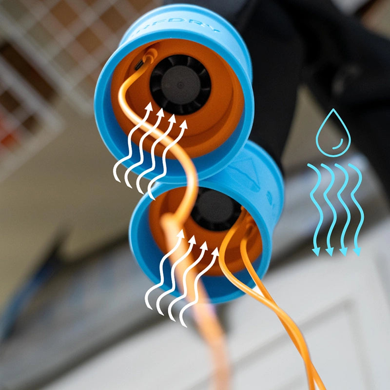 This small & mighty 2-unit kit dries your wetsuit (or booties) overnight. Simply attach it to your wetsuit and it sucks in dry air and pushes out moist air to leave your wetsuit dry to the touch, odourless and more hygienic.